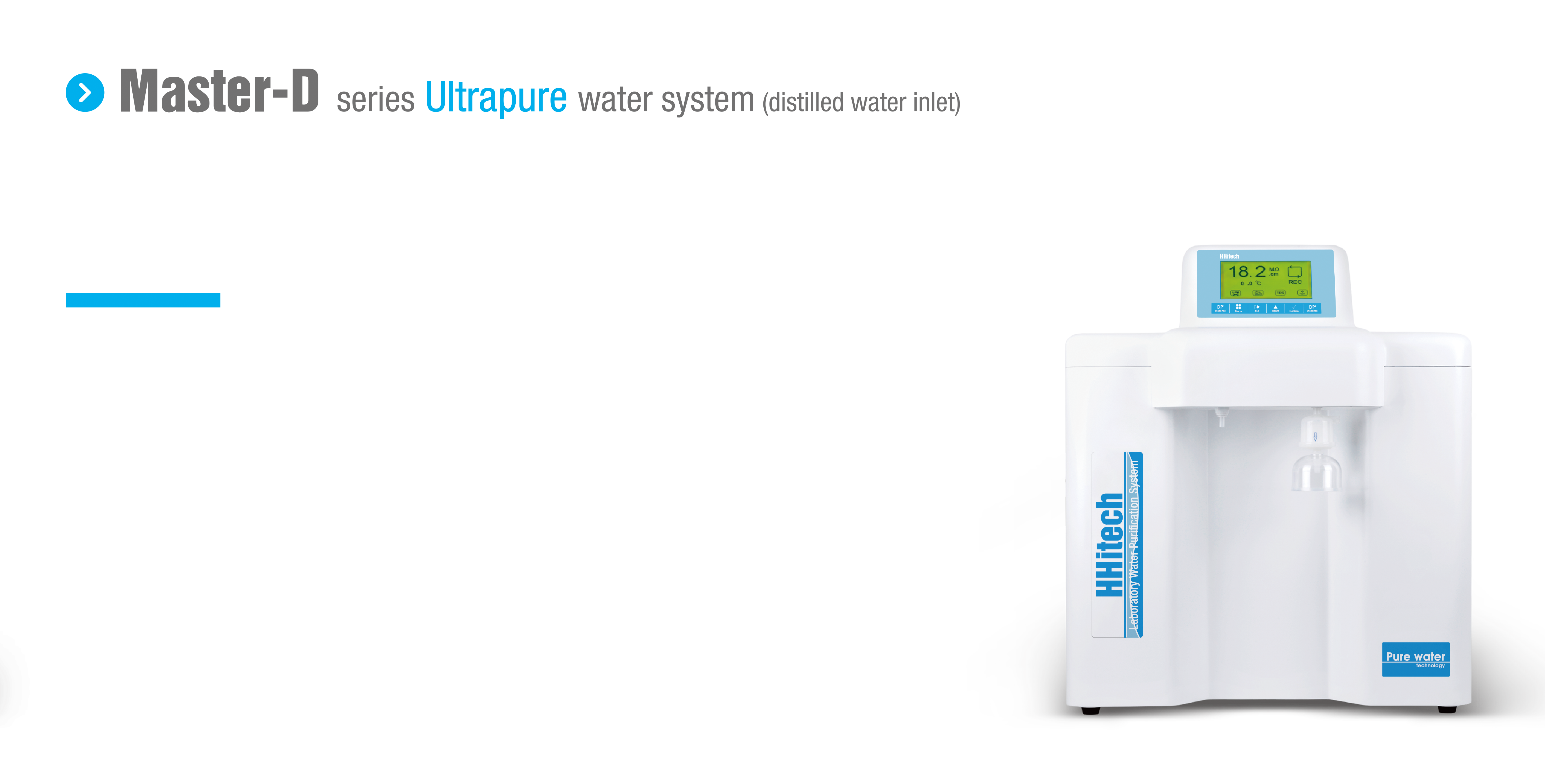 With LCD controlling system, 3 way water quality sensors, timing and quality dispensing and 1 pump, Master-D series ultrapure water system is sub-superior choice of ultrapure water for high grade experiments. With pure water or distilled water inlet, its output is up to 2 liters/minute. It can produce deionized water and ultrapure water. The deionized water′s resistivity is above 5MΩ.cm, and the ultrapure water′s resistivity absolutely reaches to 18.2MΩ.cm. It completely meets the highest grade I standard of ASTM, CAP, CLSI, EP and USP.