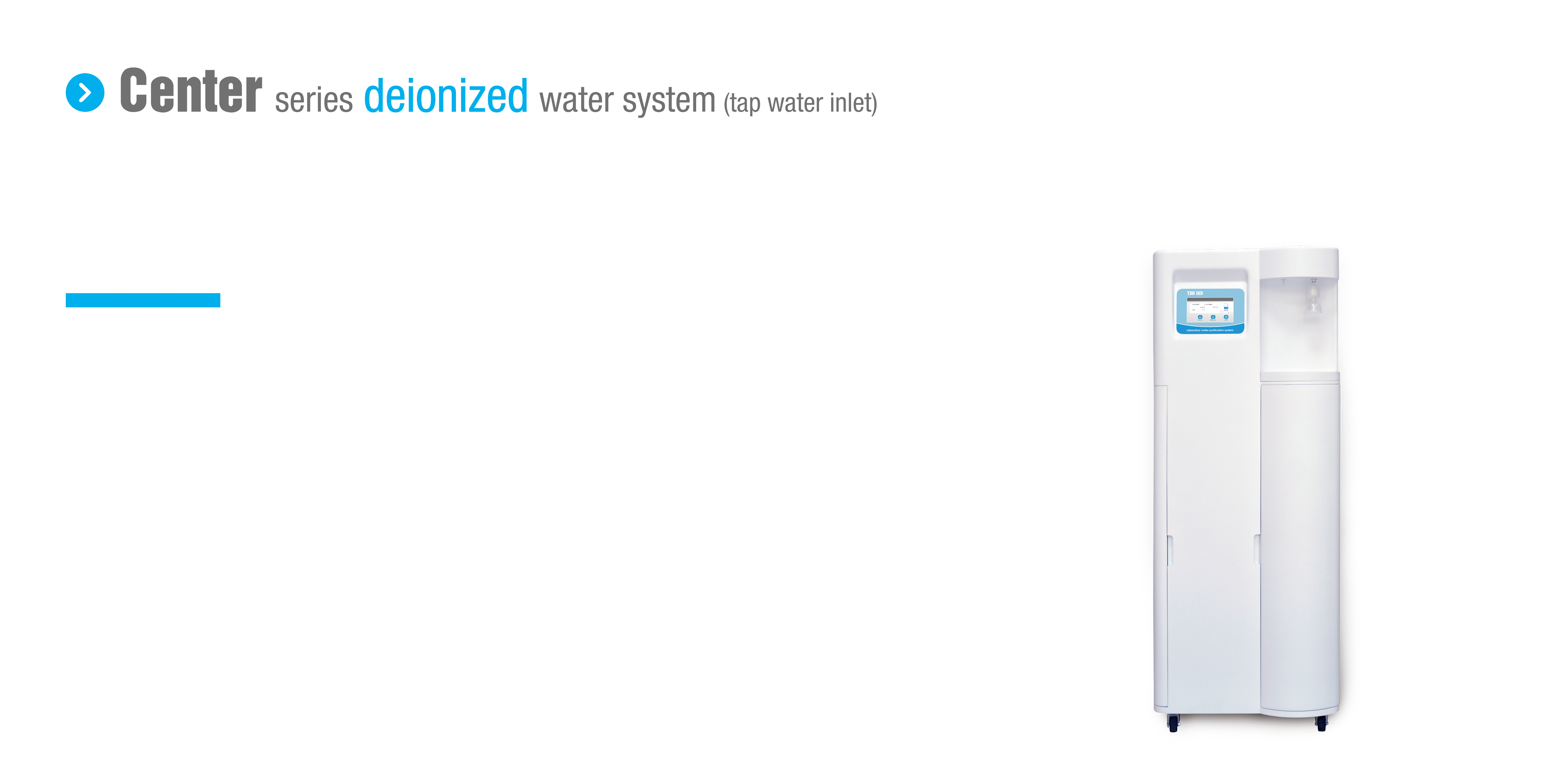With 7.0 inch touch screen system, 3 way water quality sensor, 2 way flow sensor for quantified dispensing, and 2 stage RO system, Center series deionized water system is top choice of high flux deionized water for general grade experiments.