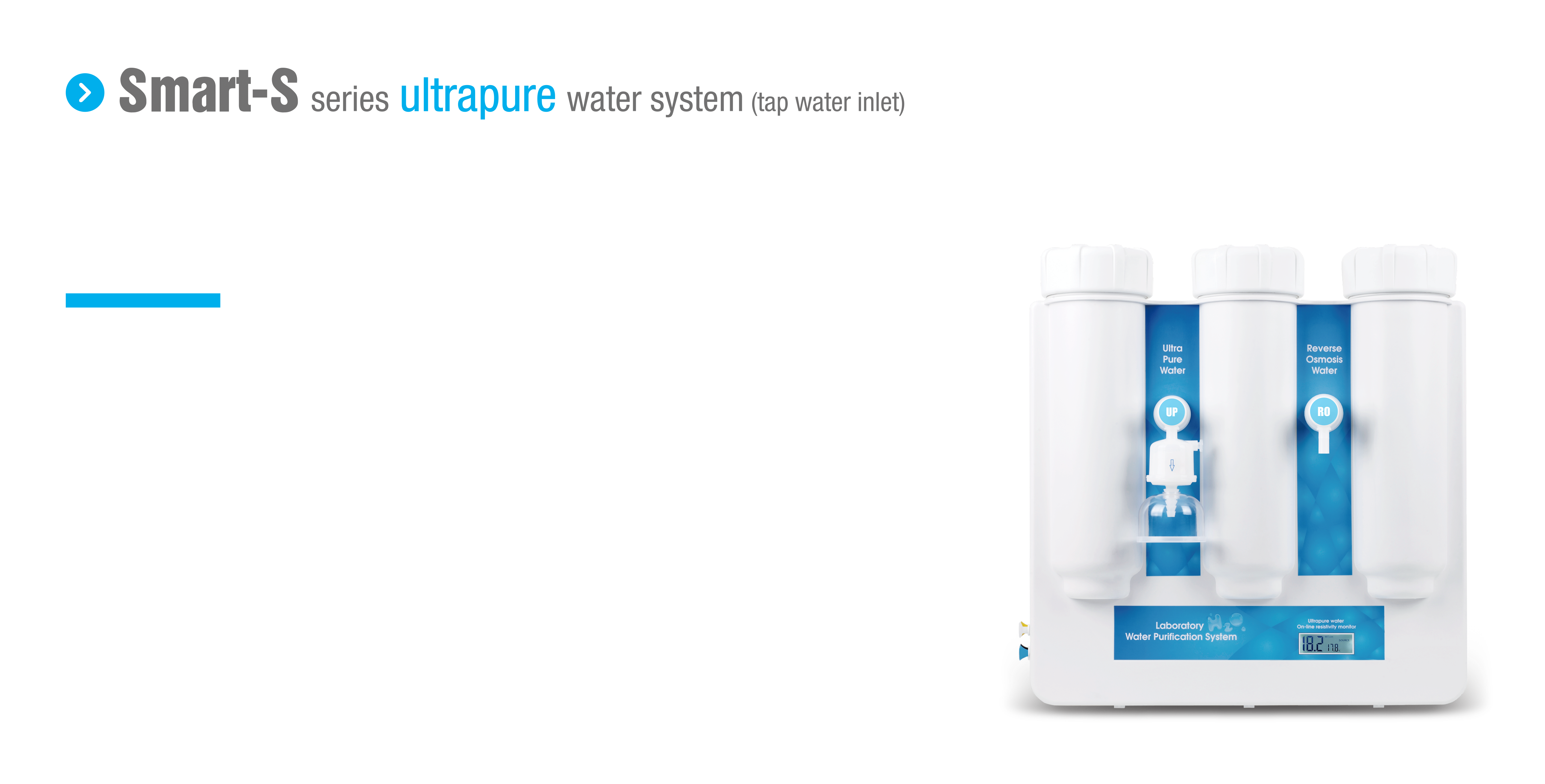 With injection molding process case, single stage RO system, 1 pump, portable TDS test pen and on-line resistivity monitor, Smart-S series ultrapure water system is sub-economic choice of ultrapure water for high grade experiments.