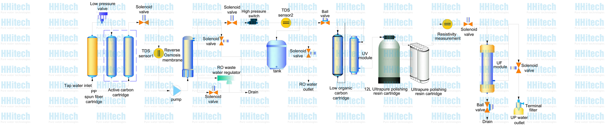 With tap water inlet, its output ranges from 45 to 125 liters/hour. It can produce single stage RO water and ultrapure water. The single stage RO water’s ion rejection rate is more than 97%, and the ultrapure water’s resistivity absolutely reaches to 18.2MΩ.cm. It completely meets the highest grade I standard of ASTM, CAP, CLSI, EP and USP.