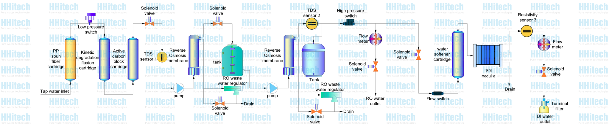 With 7.0 inch touch screen system, 3 way water quality sensor, 2 way flow sensor for quantified dispensing, 2 stage RO system and EDI module, Center-EDI series deionized water system is top choice of high flux deionized water for general grade experiments.