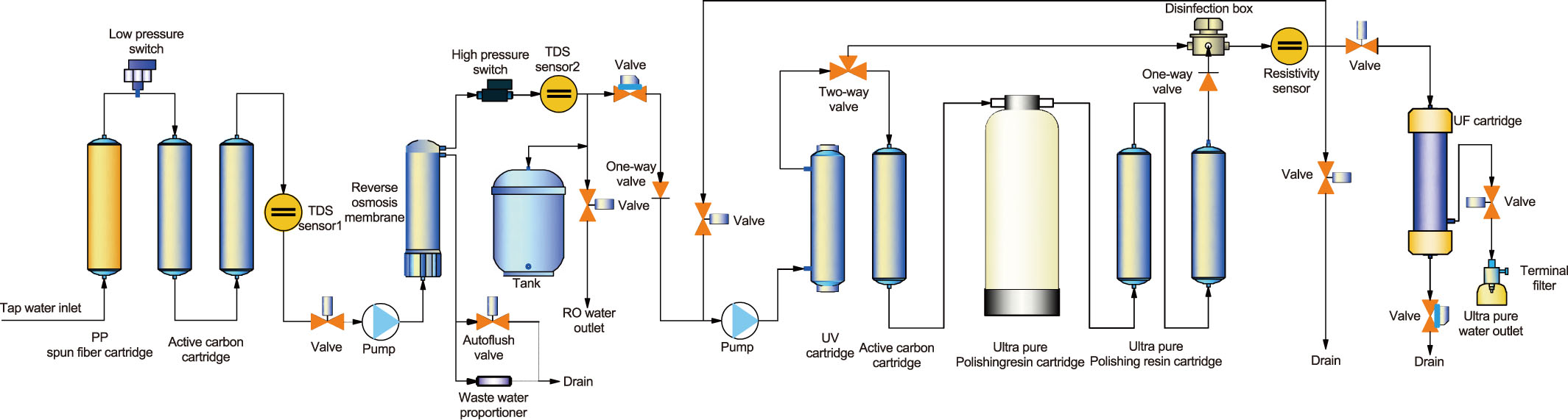 可直接制備RO純水、高純水或18.2MΩ.cm的超純水