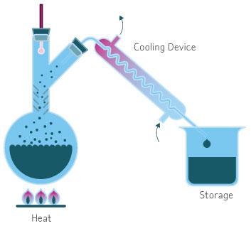 蒸餾法是通過改變水的形態,從液態到氣態再回到液態,將水和污染物分離。每一個轉換過程都為純水與污染物的分離提供了機會。理論上,除蒸汽壓力與水接近的物質和共沸化合物,蒸餾法能去除所有種類的水中污染物。